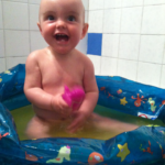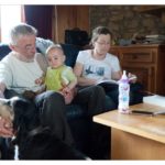 Visite de Papi et Mamie pendant le week-end de Pentecôte. C’est bien tombé, Lucie avait besoin de câlins, 2 dents sont sorties, de façon… fiévreuse !