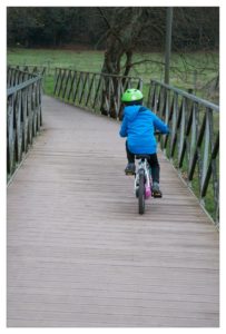Courtille, c’est bien aussi le 1er janvier, pour essayer le nouveau vélo de Lucie, et tester le tour de l’étang non plus sur la draisienne mais sur le vélo pour Victor.