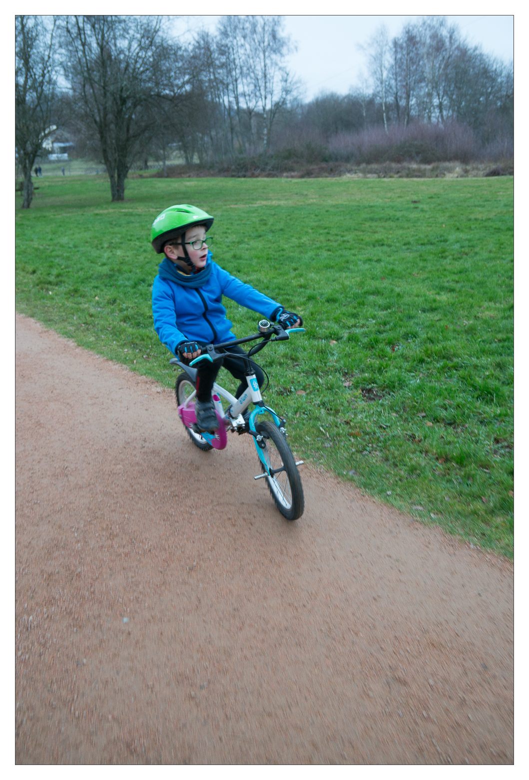 Courtille, c’est bien aussi le 1er janvier, pour essayer le nouveau vélo de Lucie, et tester le tour de l’étang non plus sur la draisienne mais sur le vélo pour Victor.